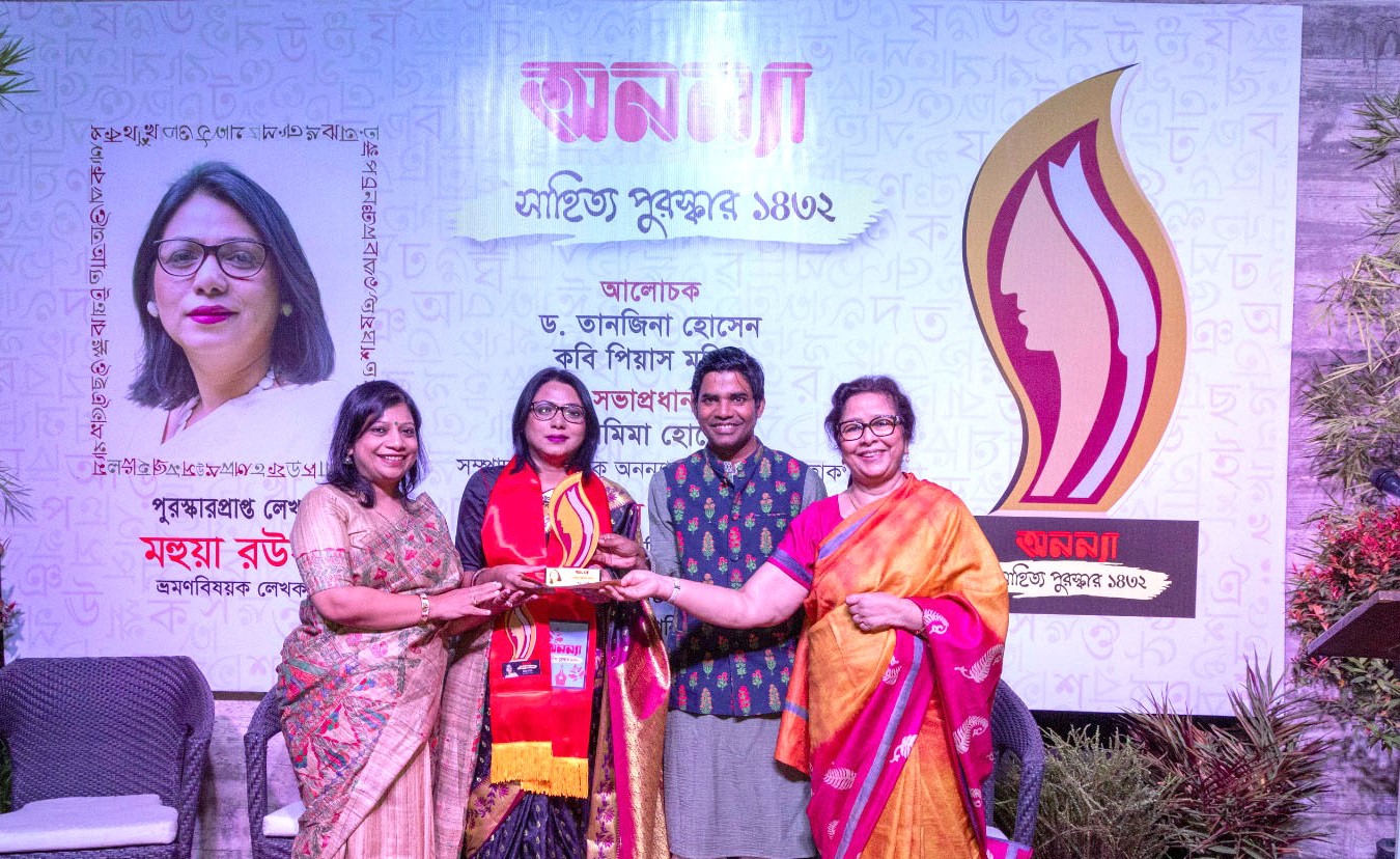 নারী বিষয়ক পাক্ষিক ম্যাগাজিন অনন্যার উদ্যোগে দেয়া হলো ‘অনন্যা সাহিত্য পুরষ্কার-১৪৩২’। এবছর এই পুরষ্কারের জন্য মনোনীত হয়েছেন ভ্রমণবিষয়ক লেখক ও ভূপর্যটক মহুয়া রউফ। রাজধানীর ধানমন্ডির বেঙ্গল শিল্পালয়ে শনিবার (১৫ নভেম্বর) বিকালে এই পুরষ্কার প্রদান অনুষ্ঠানের আয়োজন করা হয়।